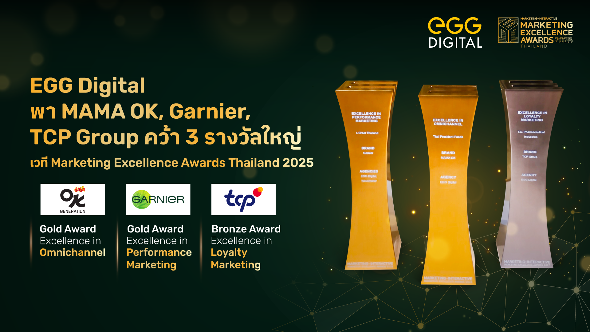 รางวัลระดับ Gold สาขา Excellence in Omnichannel จากแคมเปญ MAMA OK x EGG Digital: the Interactive Squid Game experience: ใช้กลยุทธ์ Omnichannel AR Experience ที่ประสานการทำงานกับสื่อในช่องทางต่าง ๆ แบบ Full Funnel Marketing ได้แก่ Online Personalization สร้างกระแสไวรัลบนโลกโซเชียล, OOH-Adaptive Shoppers’ Digital Screen สร้างการรับรู้ในวงกว้าง, On-Ground Activation ดึงดูดความสนใจด้วยบูทชงชิมธีม Squid Game และ On-Premise Retail Media นำ AR มาใช้ในการโฆษณาเป็นครั้งแรกในตลาดบะหมี่กึ่งสำเร็จรูป พลิกจุดขายให้กลายเป็นประสบการณ์ที่สนุกและมีส่วนร่วมได้ กลยุทธ์นี้ช่วยสร้างประสบการณ์ที่ไร้รอยต่อและการจดจำแบรนด์ไปยังกลุ่มเป้าหมายหลัก โดยเอ้ก ดิจิทัลใช้ AI วิเคราะห์และจัดกลุ่มเป้าหมายใหม่เป็น 1) Gen Z และมิลเลนเนียล 2) ผู้บริโภคพรีเมียมเซกเมนต์ที่ชื่นชอบเทคโนโลยี 3) แฟนด้อมวัฒนธรรมเกาหลี แคมเปญนี้ช่วยผลักดันให้ MAMA OK ก้าวเป็นผู้นำตลาดบะหมี่กึ่งสำเร็จรูปพรีเมียมในไทย ขยายฐานลูกค้าใหม่ได้ถึง 64% โดย 42% เป็นกลุ่มลูกค้าที่ซื้อบะหมี่พรีเมียมเป็นครั้งแรก และเพิ่มยอดขายได้ถึง 16.4%