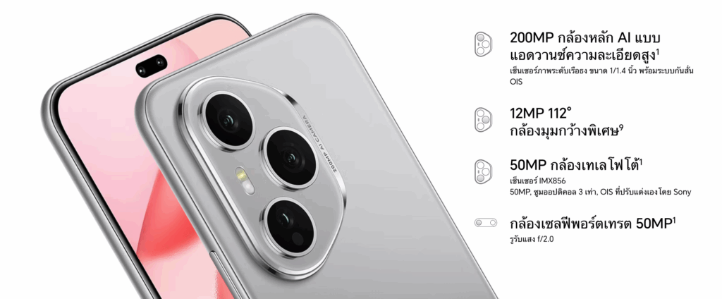 HONOR 400 Series มาพร้อมระบบกล้องสุดล้ำ 200MP Ultra-clear Advance AI ที่ยกระดับการถ่ายภาพด้วยกล้องหลัก AI ความละเอียดสูงถึง 200MP ขนาดเซ็นเซอร์ใหญ่1/1.4 นิ้ว รูรับแสง f/1.9 พร้อมระบบป้องกันภาพสั่นไหวแบบคู่ OIS + EIS เพื่อภาพที่คมชัดแม้ในสภาพแสงน้อย นอกจากนี้ยังเสริมประสิทธิภาพการถ่ายภาพระยะไกลด้วยกล้อง Telephoto ความละเอียด 50MP ใช้เซ็นเซอร์ Sony IMX856 รองรับการซูมแบบออปติคัล 3x พร้อมระบบกันสั่น OIS (เฉพาะรุ่น HONOR 400 Pro) ช่วยให้เก็บภาพระยะไกลได้อย่างคมชัดไม่สั่นไหว