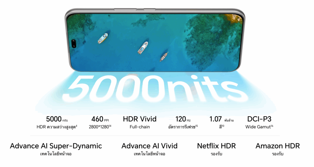 หน้าจอมาพร้อมจอ OLED ขนาด 6.7 นิ้ว ความละเอียด 2800×1280 พิกเซล (460 PPI) รองรับรีเฟรชสูงถึง 120Hz แสดงผลสี 1.07 พันล้านสี ครอบคลุมขอบเขตสี DCI-P3 100% และรองรับ ความสว่าง HDR สูงสุด 5,000nits ให้ภาพคมชัด สีสันสมจริง แม้ใช้งานกลางแจ้ง