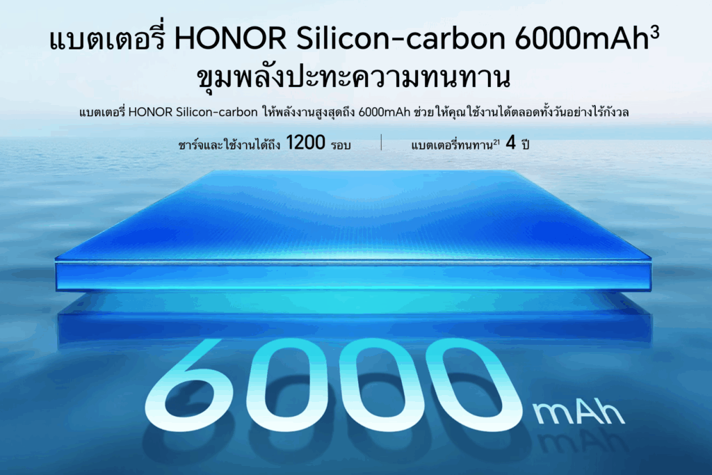 มอบการใช้งานทรงพลังด้วยแบตเตอรี่ซิลิคอนคาร์บอนความจุ 6000mAh