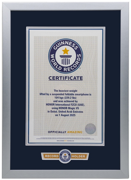Honor แสดงให้เห็นถึงความแข็งแกร่งของ Magic V5 ที่เป็นสามาร์ทโฟนจอพับอย่างที่สุดในการผ่านการทดสอบกับ Guinness World Record ให้โลกได้รู้ว่า Magic V5 นั้นแข็งแกร่งจริงๆ โดยเฉพาะในส่วนของบานพับจอทำสถิติโลกไว้ที่ 104 กก. ซึ่งนอกจากนั้นยังทนต่อฝุ่นและน้ำได้ในระดับ IP58/59 ซึ่งสูงที่สุดเหนือสมาร์ทโฟนแบบเดียวกันเมื่อเทียบกับของคู่แข่ง